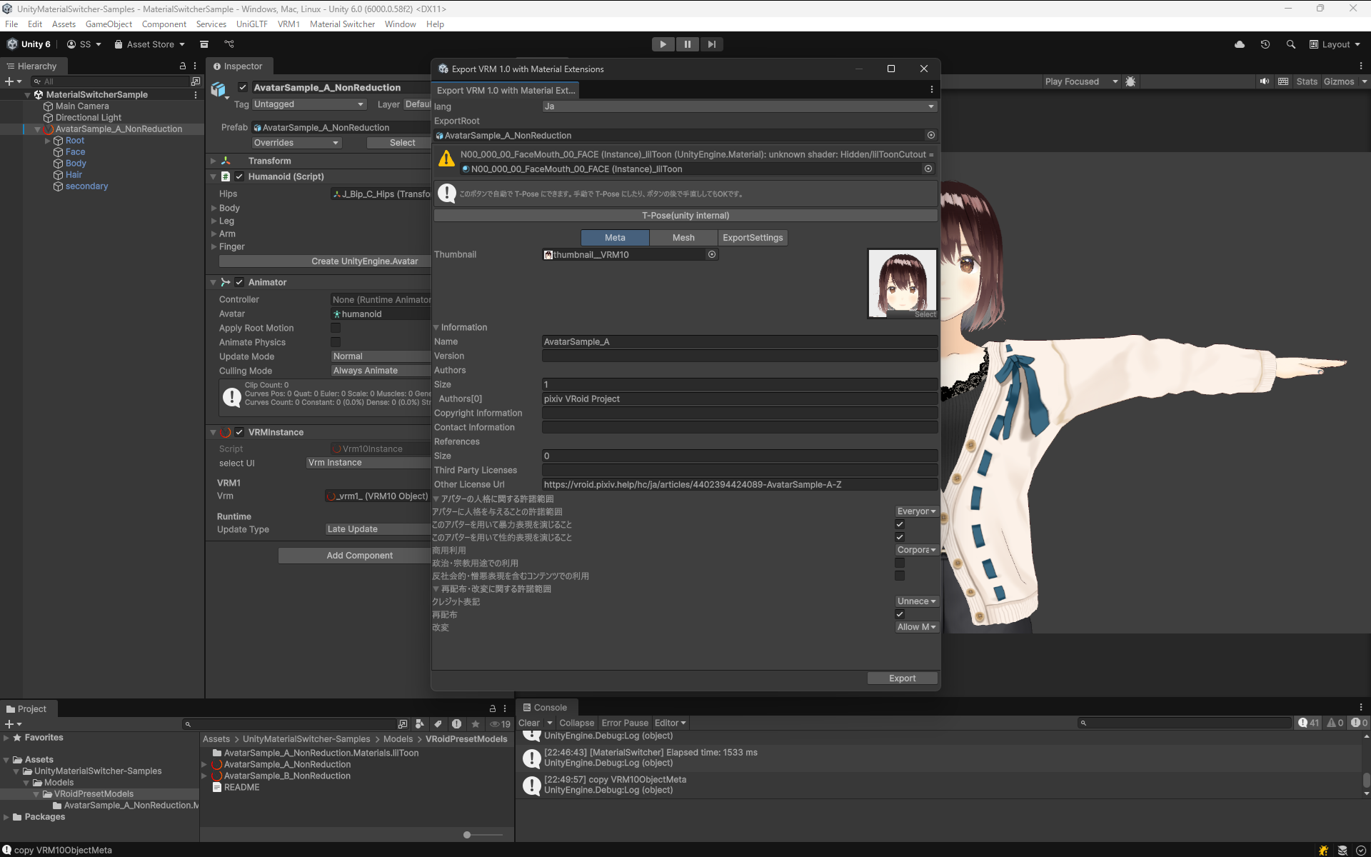 lilToonのマテリアル情報を含むVRMファイルの作成