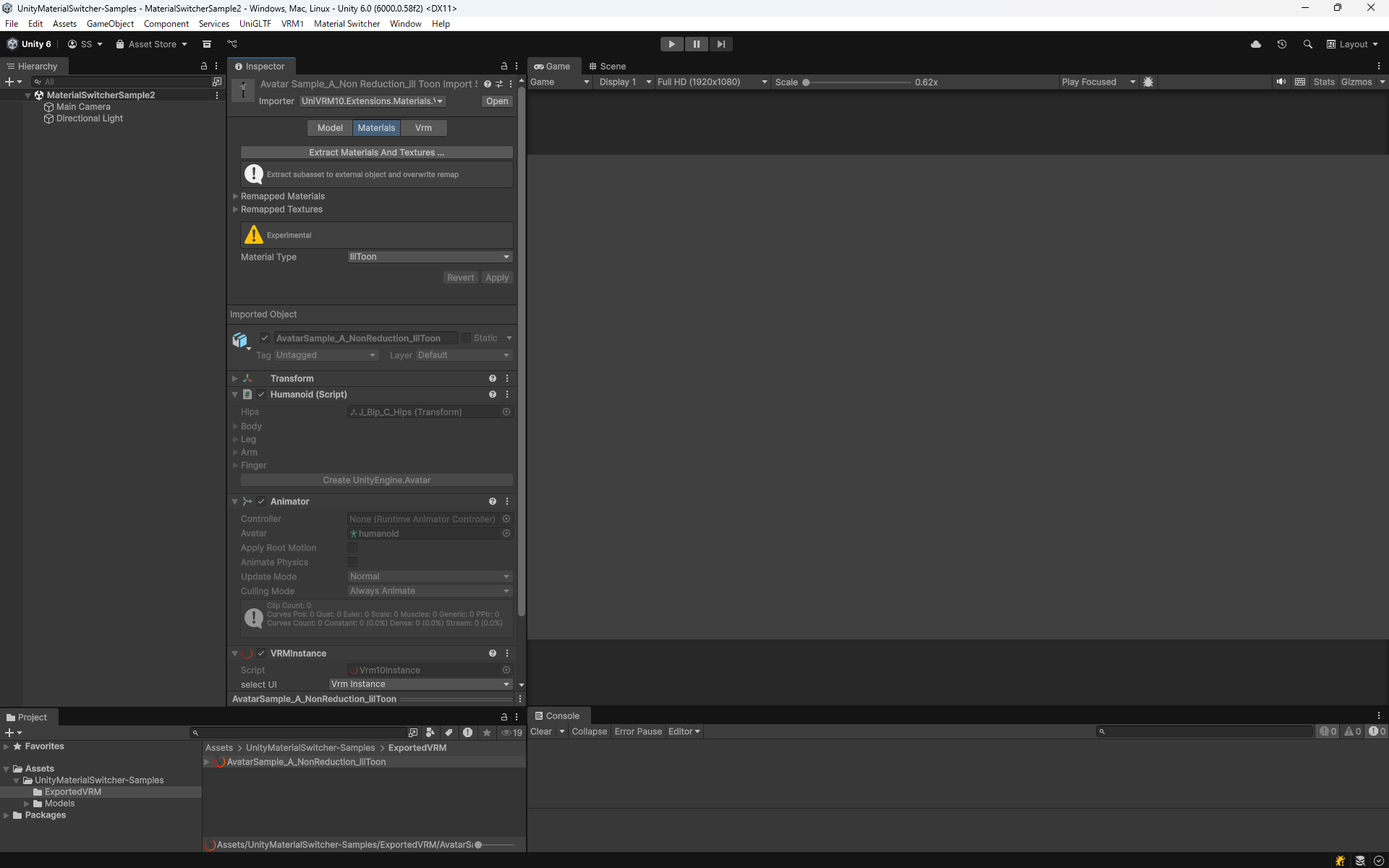 3. モデルの全てのマテリアルが自動的にlilToonに変換されます